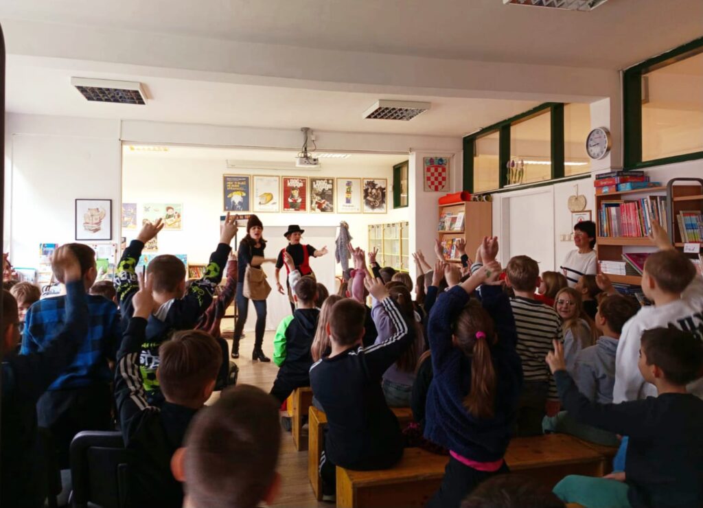 Danas su nam u školskoj knjižnici bili Pero i Ljuban, Antuntun, miševi i mačke, Paulina P., pa čak i Ivana Brlić-Mažuranić – učenici trećih razreda uživali su u dramsko – scenskoj igri “Lektira na oko” u izvedbi Ane Katulić i Anite Pukanić iz Štoos teatra.
